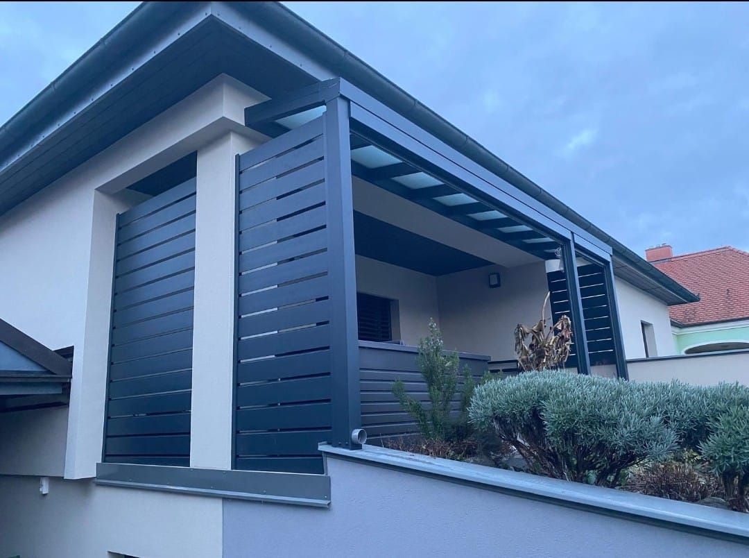Unsere Sichtschutzwände aus Aluminium und Glas schützen effektiv vor Blicken, Wind und Lärm – und sehen dabei einfach gut aus.